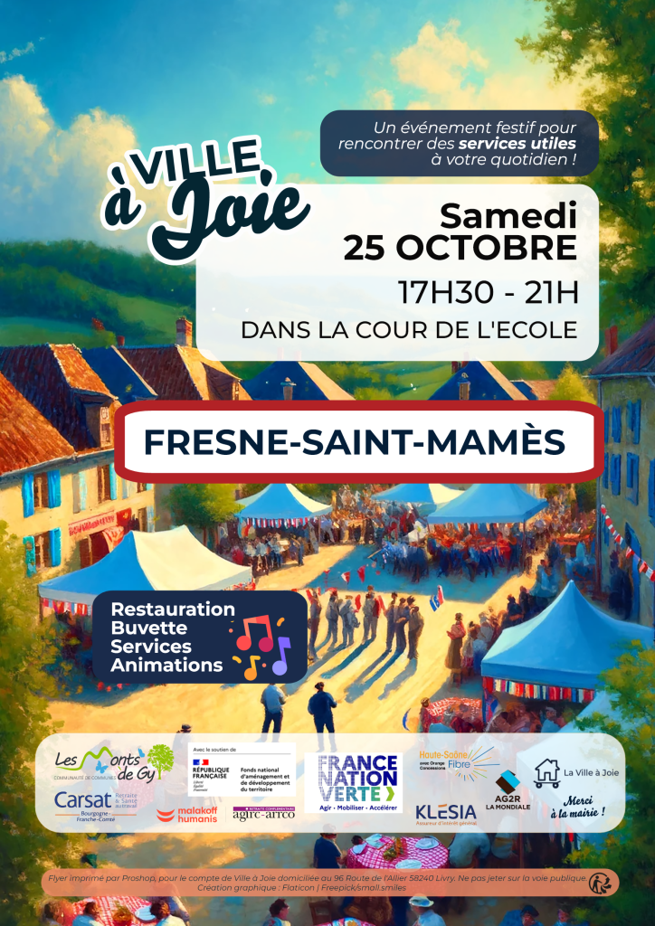 Ville à Joie 25 octobre 2025 de 17 h 30 à 21 h dans la cour de l’école