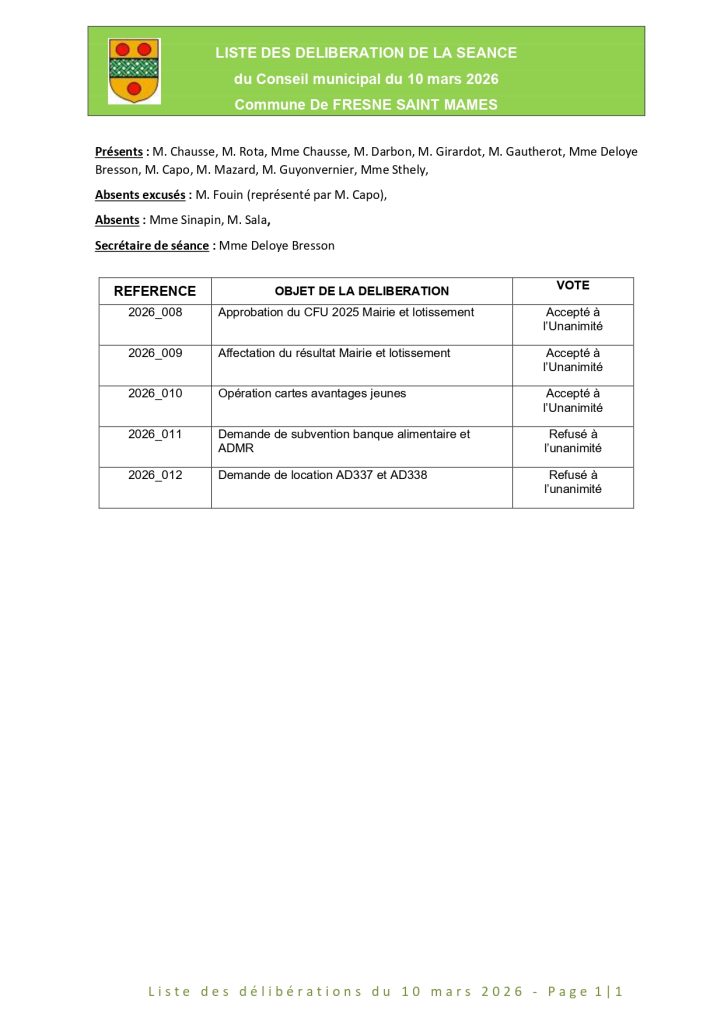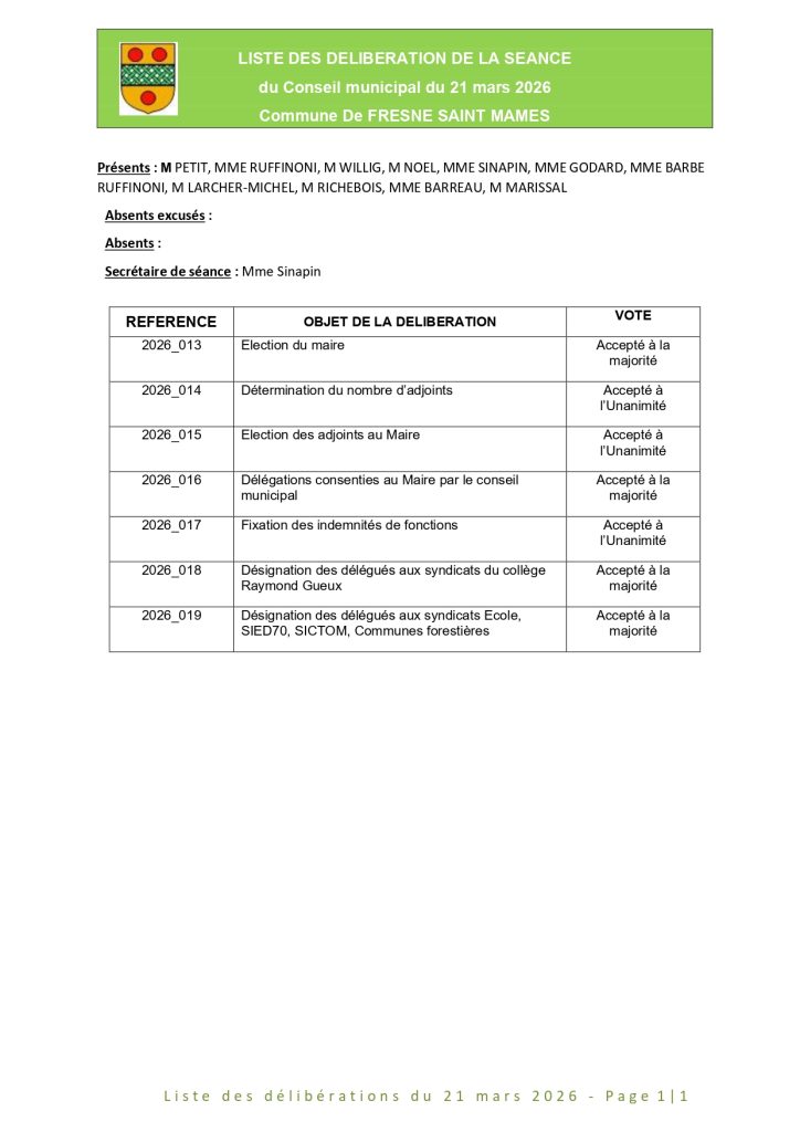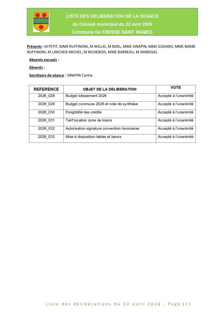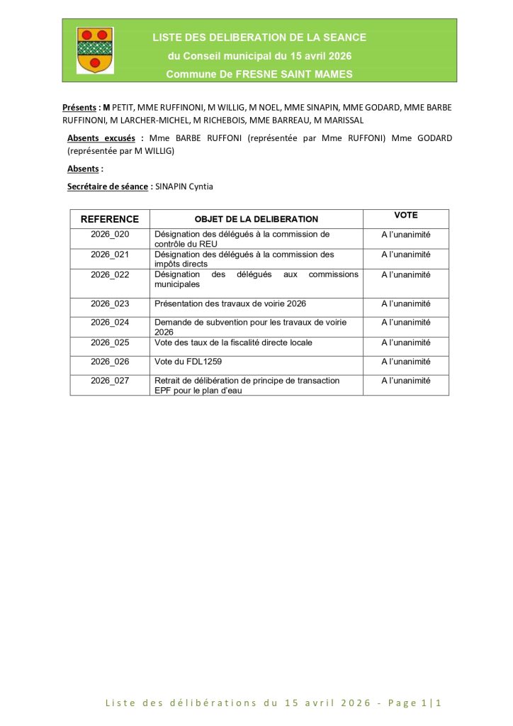 Les délibérations sont consultables à la mairie pendant les horaires d’ouverture.